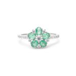 AnéisPrata 925Anel Flor 5 Pétalas com Cristal Paraíba e Zircônias Brancas - Prata 925