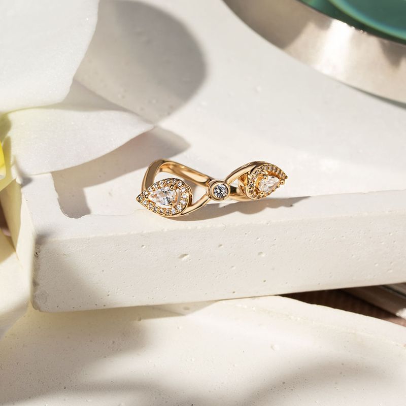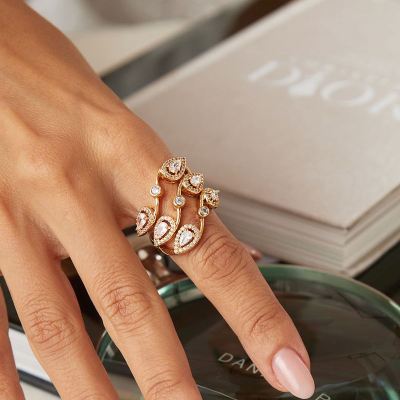 Anel Gotas Aro Torcido com Zircônias Brancas - Banho de Ouro 18k