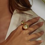 O anel de esferas grandes com furos é moderno e cheio de estilo. Com banho de ouro 18k e modelo free size que veste do 17 ao 19, oferece conforto e visual impactante. Ideal para quem busca uma joia diferenciada e fácil de combinar.