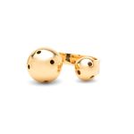 O anel de esferas pequenas com furos é moderno, leve e fácil de usar. Com banho de ouro 18k e modelo free size que veste do 15 ao 19, oferece conforto e estilo em uma joia prática e atual. Ideal para quem busca um acessório versátil e cheio de charme.