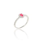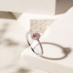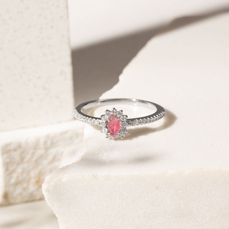 O anel mini ovalzinho de cristal rubi é uma peça delicada e única. Com um deslumbrante cristal rubi emoldurado por zircônias brancas, ele combina sofisticação e sutileza. O aro fino, também cravejado com pequenas zircônias, acrescenta ainda mais brilho e elegância, tornando-o uma joia perfeita para qualquer ocasião.