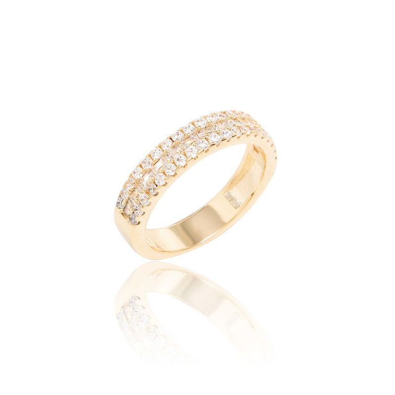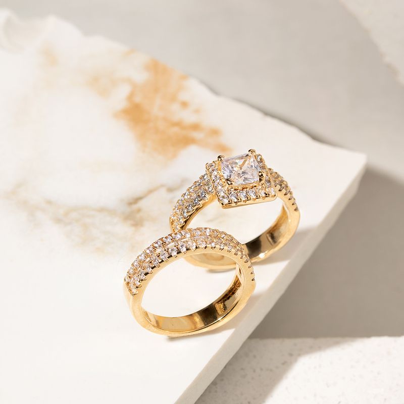 Anel Quadrado Solitário com Zircônia Branca e Aparador - Banho de Ouro 18k