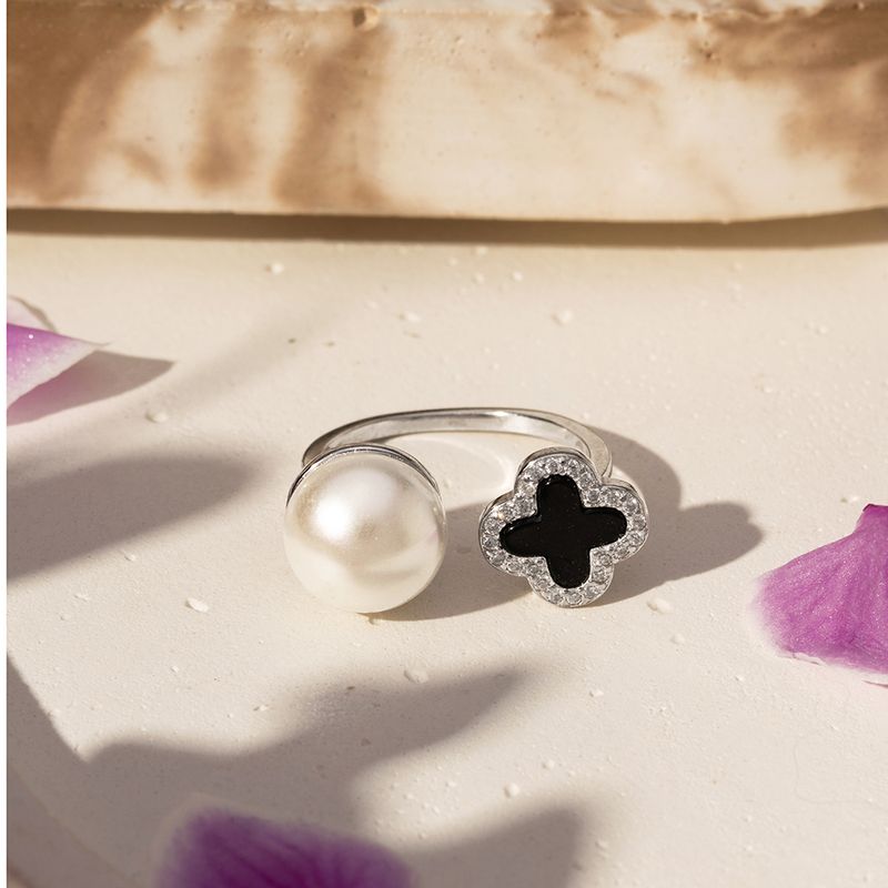 AnéisPrata 925Anel Trevo com Onix Lab e Zircônias Brancas - Prata 925