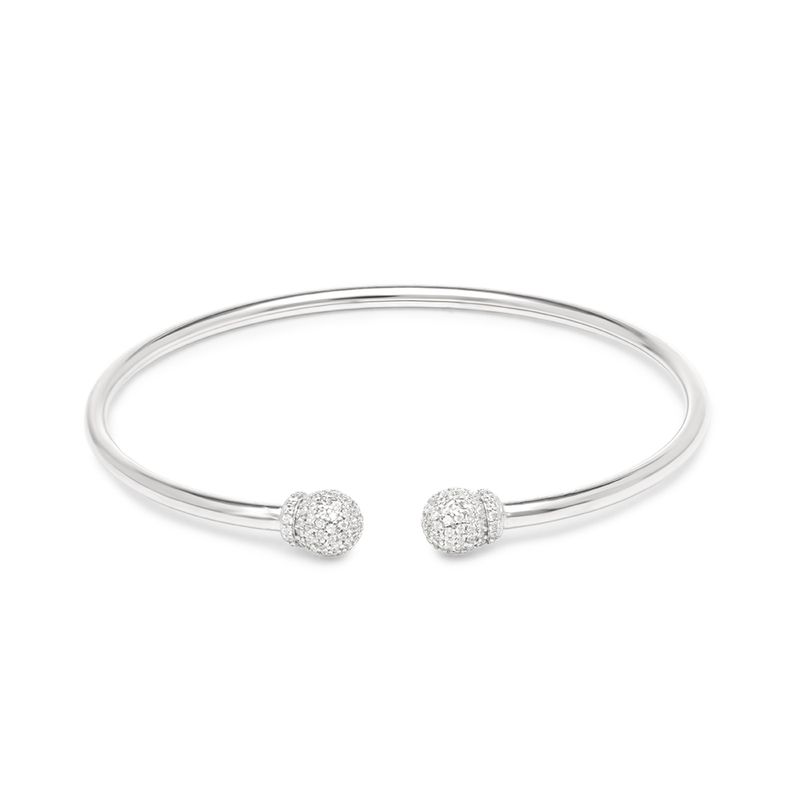 O bracelete em Prata 925 traz design moderno com duas extremidades em formato redondo, totalmente cravejadas com zircônias brancas. Uma joia sofisticada e versátil, perfeita para compor produções elegantes com brilho sutil e delicado.