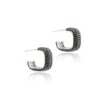 Brinco Argola 25mm Quadrada 8 Linhas com Zircônias Negras - Banho de Ródio Branco