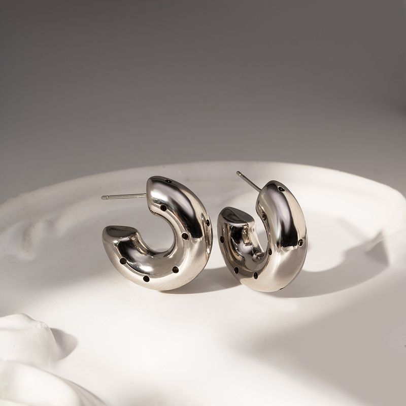 Brinco Argola com Furos Lisa - Banho de Ródio Branco