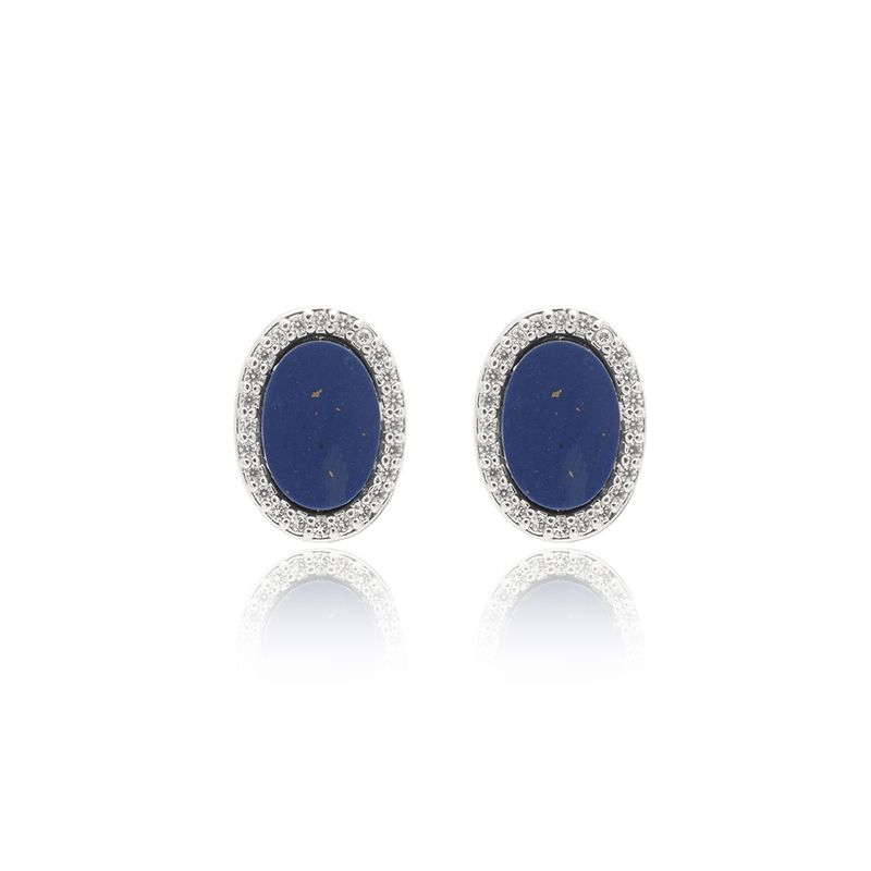 Brinco com Lapis Lazúli Lab e Zircônias Brancas - Banho de Ouro 18k