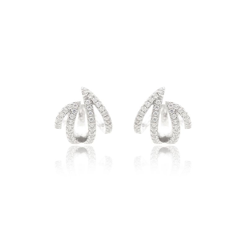 O brinco em Prata 925 traz um design curvado delicadamente cravejado com zircônias brancas. Sofisticado e versátil, une brilho intenso e estilo moderno, perfeito para destacar seu visual em qualquer ocasião.