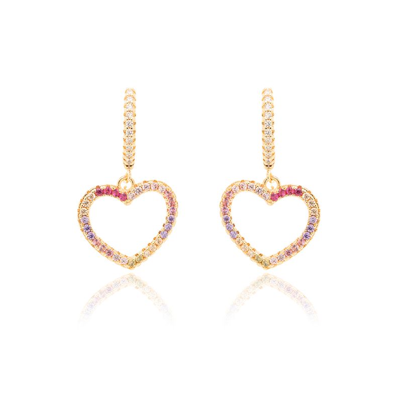 Brinco Earbling Coração Vazado com Zircônias Coloridas - Banho de Ouro 18k
