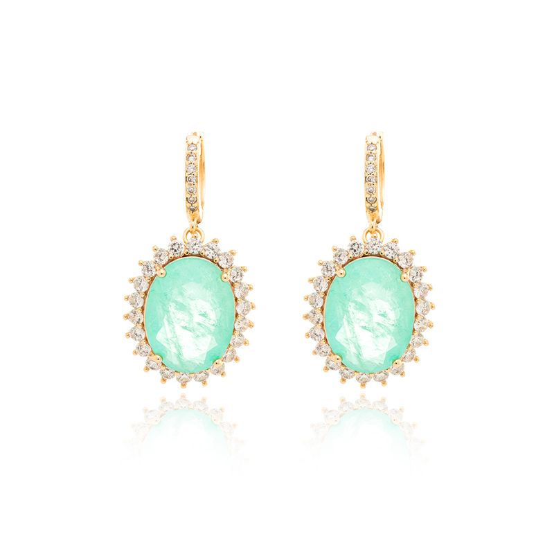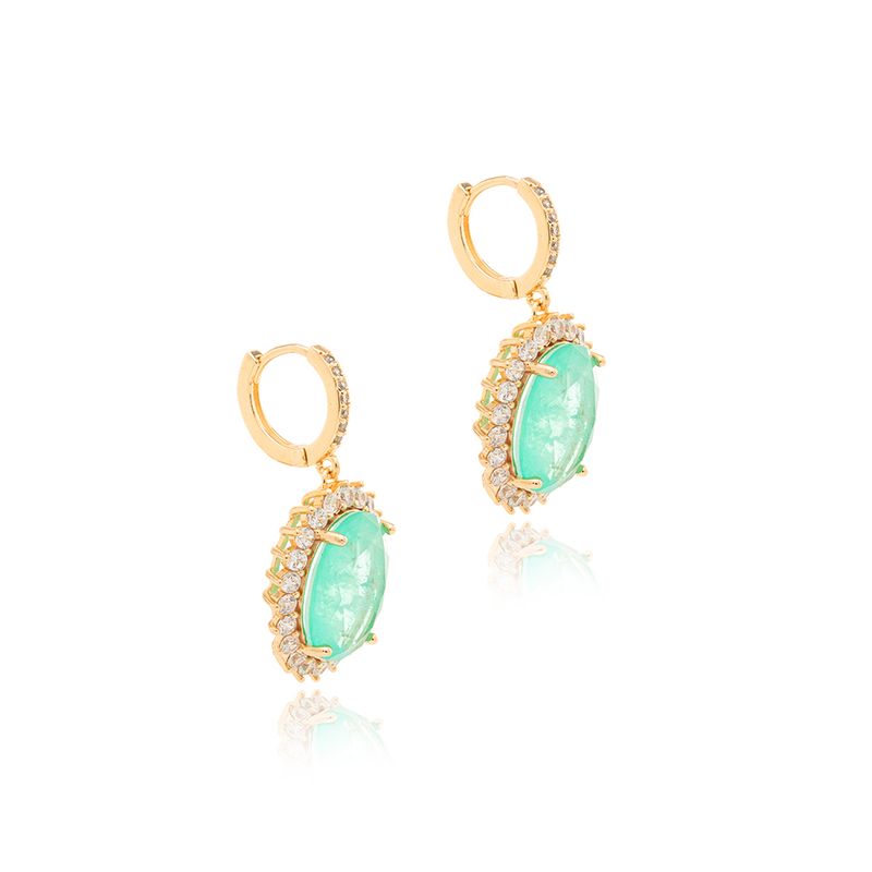 Brinco Earbling Oval de Fusion Turmalina e Zircônias Brancas - Banho de Ouro 18k