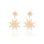 O brinco que encanta à primeira vista! O Ear Jacket Estrelas traz um design moderno com zircônias brancas reluzentes que iluminam o rosto com elegância. Banho de ouro 18k, acabamento impecável e ajuste confortável. Um toque celestial para seu visual — perfeito para quem ama brilho