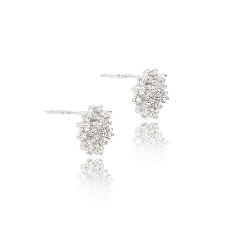 O brinco em Prata 925 traz design inspirado em floco, cravejado com zircônias brancas que refletem brilho intenso e delicado. Uma joia sofisticada e atemporal, perfeita para iluminar o rosto com elegância e charme em qualquer ocasião.