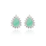 O brinco é um símbolo de elegância e sofisticação! Cada peça traz uma esmeralda natural em lapidação gota de aproximadamente 0,65 ct, cercada por moissanites melee de 1,5mm na cor D e pureza VVS1, que proporcionam um brilho intenso e refinado. Produzido em prata 925 com acabamento de alta joalheria, o contraste entre o verde vibrante da esmeralda e o brilho dos moissanites cria uma joia clássica e atemporal.