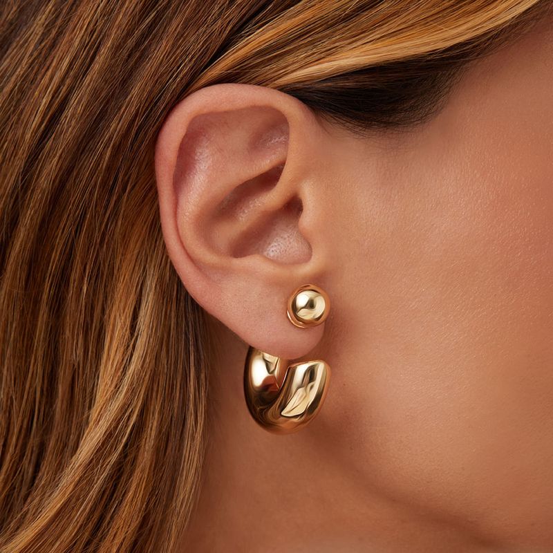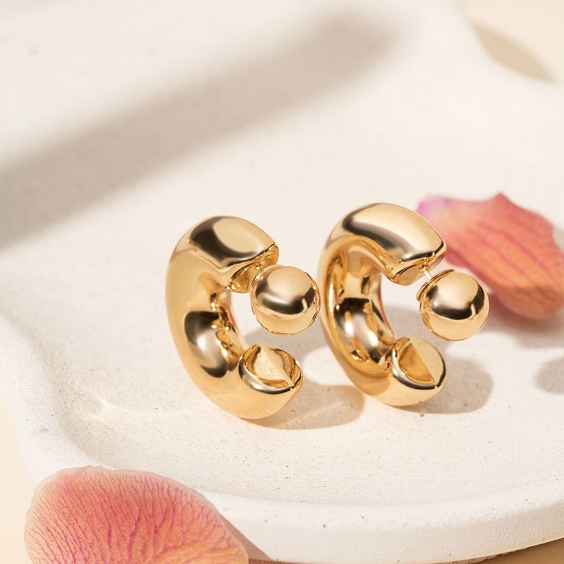 O brinco argola lisa em banho de ouro 18k tem 30mm de diâmetro e acompanha tarraxas em formato de esfera de 10mm, garantindo conforto e segurança. Um design clássico e sofisticado que nunca sai de moda, perfeito para compor looks modernos e elegantes.