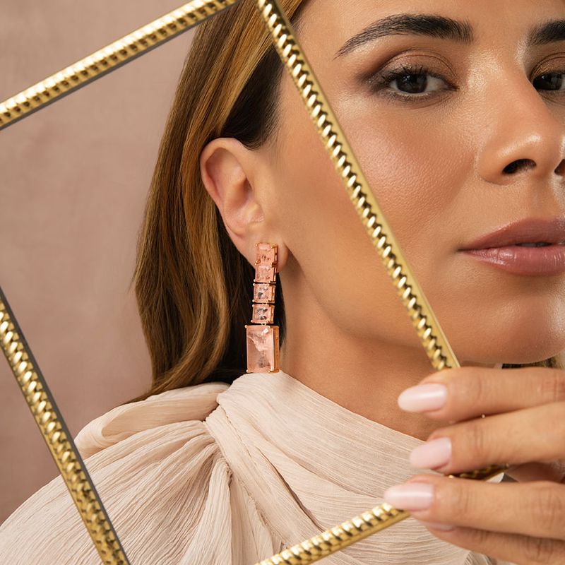 Um brinco que é puro encanto! As pedras fusion morganita dão aquele toque romântico e delicado, enquanto o banho de ouro 18k deixa tudo mais glamouroso. Leve, moderno e superchique — o brinco que transforma qualquer look num arraso!