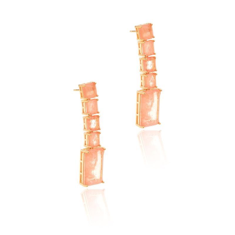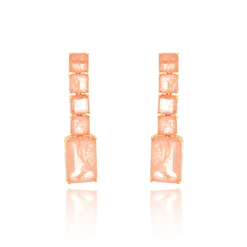 Brinco Longo Formas de Fusion Morganita - Banho de Ouro 18k