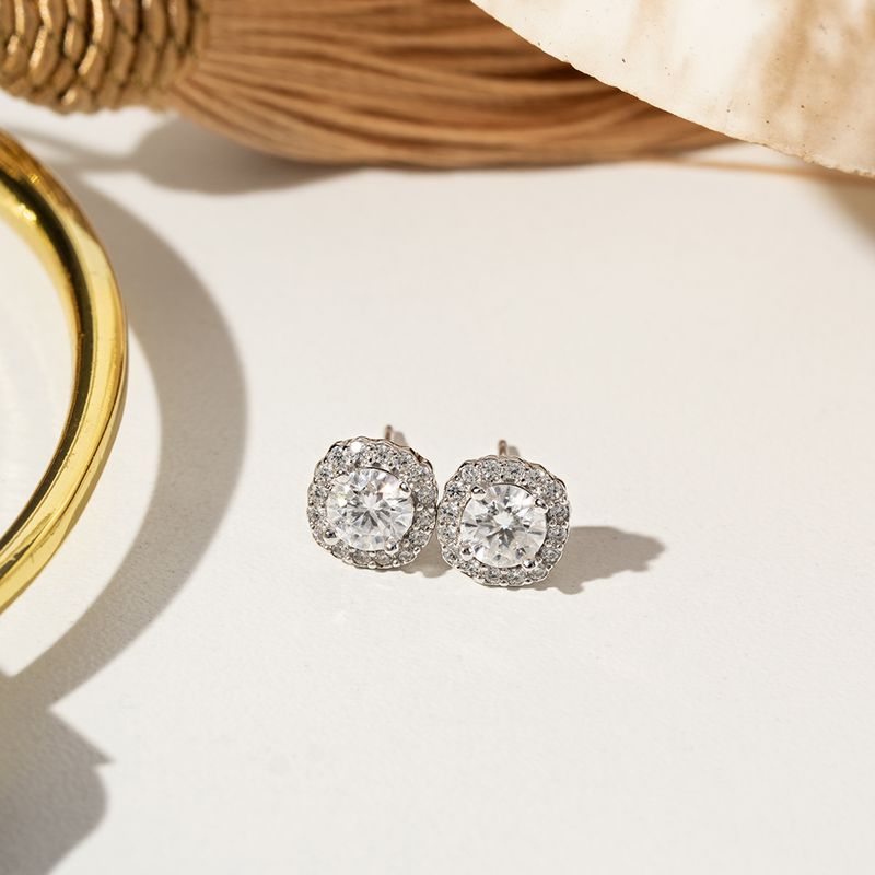 O brinco em Prata 925 traz Moissanite lapidação brilhante de 5mm (0,5CT / 50 pontos), cor D — a mais clara da escala GIA — e pureza VVS1, garantindo brilho intenso e sofisticado. As zircônias brancas complementam a peça com elegância. Acompanha certificado GRA de autenticidade.