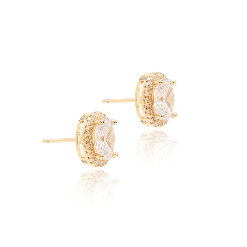 Brinco Oval Cravejado com Zircônias Brancas - Banho de Ouro 18k