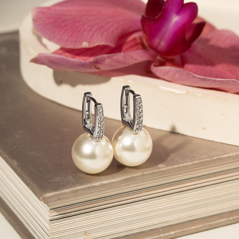 Brinco Pêndulo com Pérola Shell e Zircônias Brancas - Prata 925