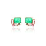 Brinco Retângular Médio com Fusion Esmeralda, Cristal Turmalina Rosa, Cristal Paraiba - Banho de Ouro 18k