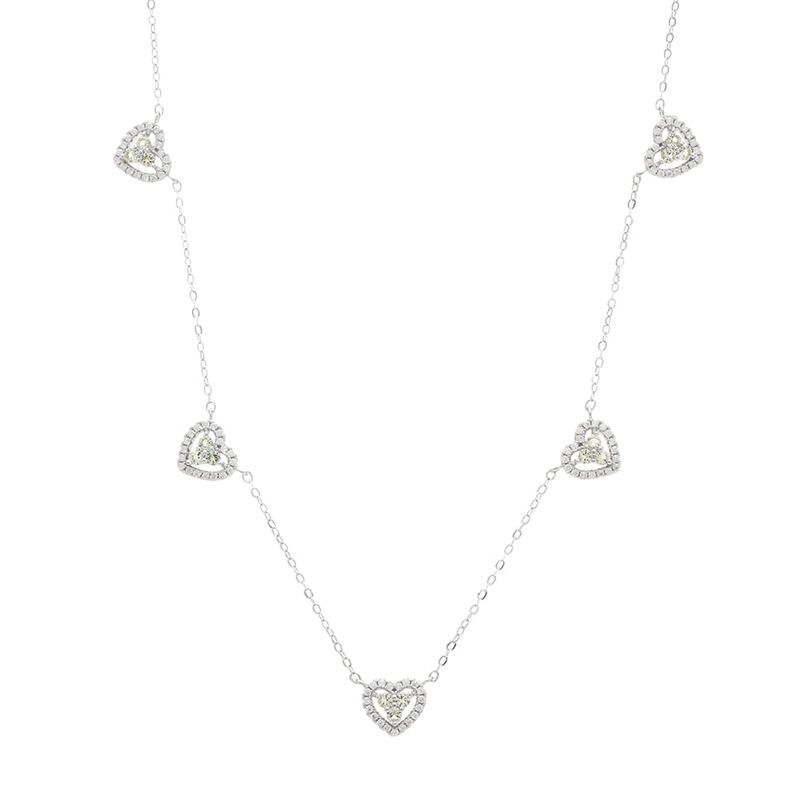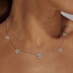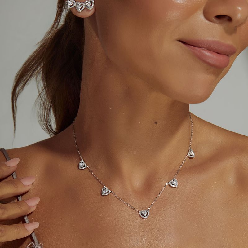 O colar com 5 corações e zircônias turmalina paraiba e brancas é delicado, elegante e cheio de brilho. Feito em prata 925 e com 48cm, oferece visual romântico e fácil de combinar. Ideal para quem busca uma joia leve, moderna e sofisticada para o dia a dia.