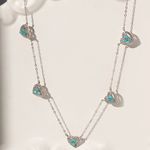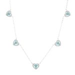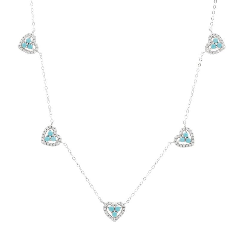 O colar com 5 corações cravejados com zircônias turquesa e zircônias brancas traz um visual romântico com um toque moderno e cheio de frescor. A cor vibrante da turquesa destaca o design delicado, enquanto a prata 925 garante acabamento impecável e durabilidade. Com 48cm de comprimento, é uma joia leve, elegante e cheia de charme.