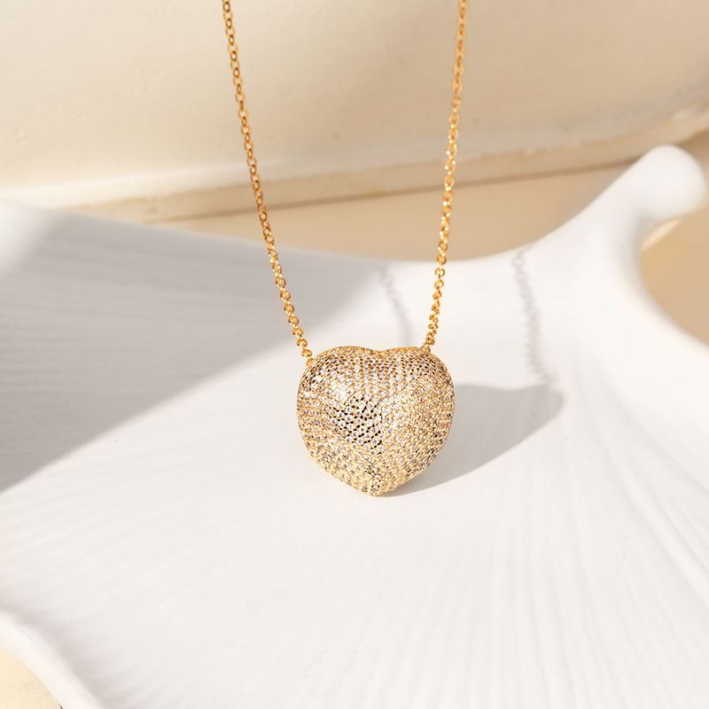 colar em banho de ouro 18k com 50cm apresenta pingente em formato de coração cravejado com zircônias brancas, que refletem brilho intenso e delicado. Uma joia romântica e elegante, perfeita para destacar o colo com sofisticação.