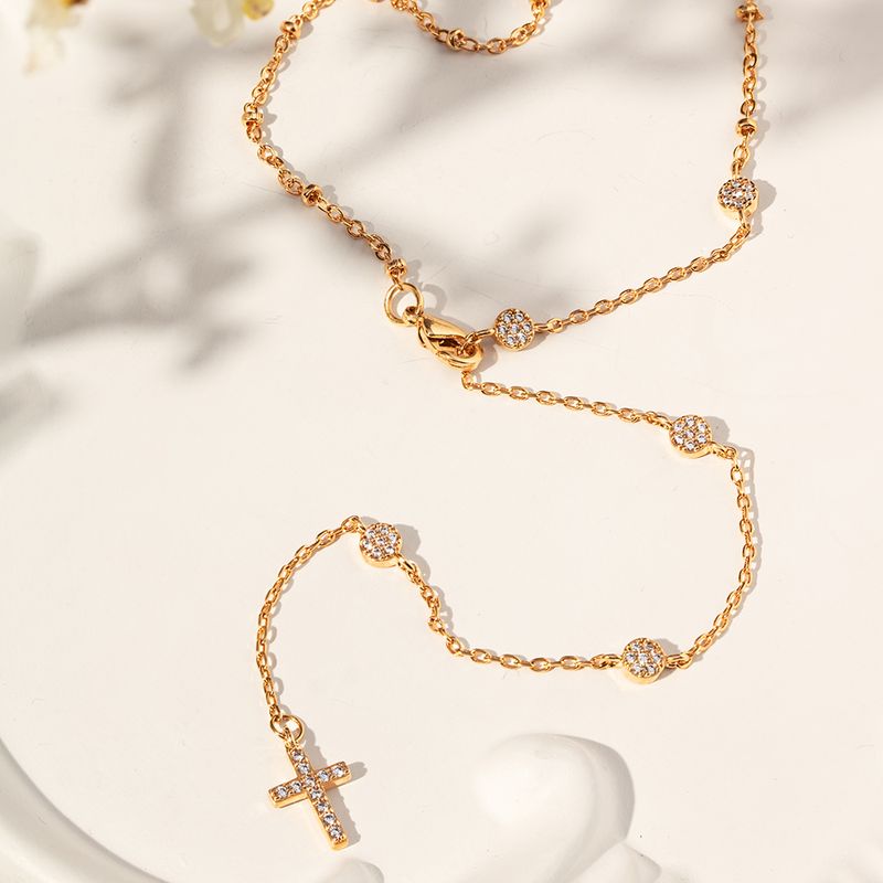 Colar Gravatinha Redondinhos e Cruz com Zircônias Brancas 54cm - Banho de Ouro 18k