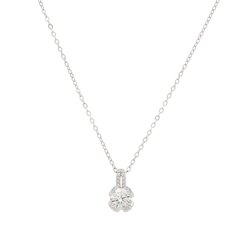 O colar Moissanite Lapidação Brilhante em Prata 925 é uma joia deslumbrante! A pedra central de 6,5mm (1,0ct/100 pontos) apresenta moissanite de cor D — a mais clara da escala GIA — e pureza VVS1, garantindo brilho intenso e transparência impecável. Detalhes em zircônias brancas completam o design luxuoso e atemporal. Corrente de 50cm com fecho seguro. Acompanha certificado GRA de autenticidade.