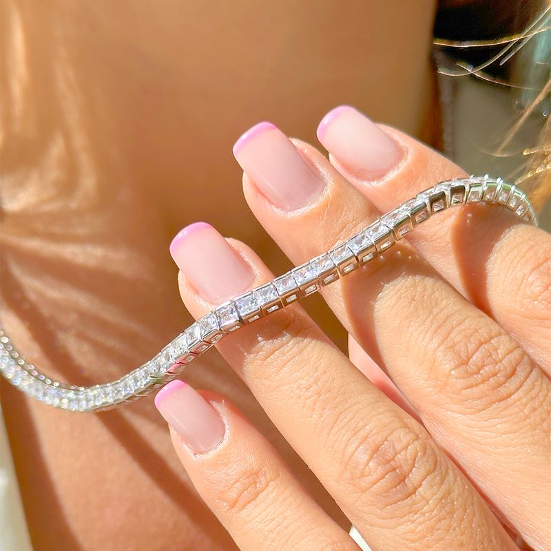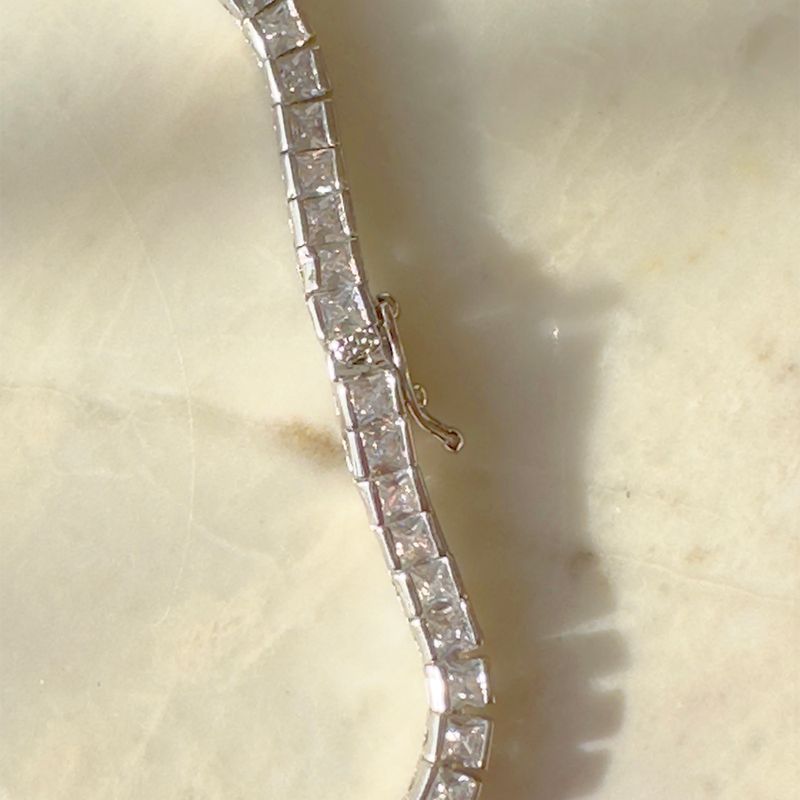 Colar riviera com zircônias brancas quadradas. fecho gaveta.