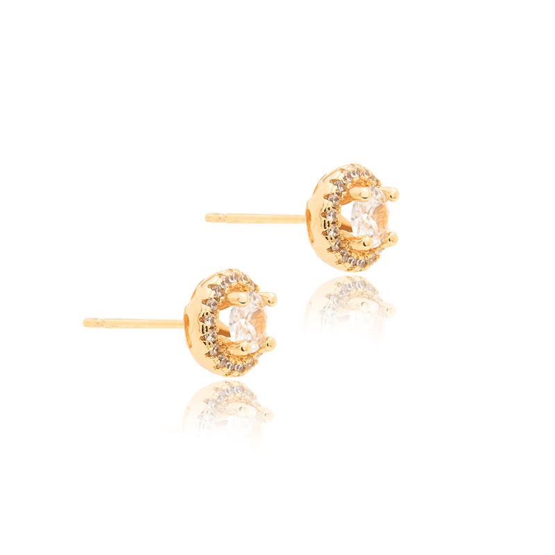 Conjunto Brinco e Colar Redondo 5mm com Zircônias Brancas 50cm - Banho de Ouro 18k
