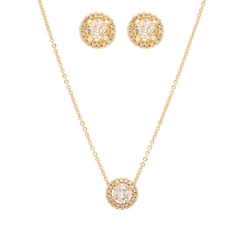 BrincosColaresBanho de ouro 18kBanho de Ouro 18kConjunto Brinco e Colar Redondo 5mm com Zircônias Brancas 50cm - Banho de Ouro 18k