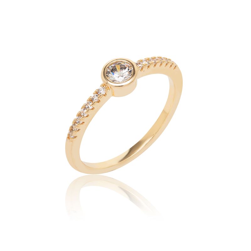 Kit com 2 Anéis Solitário Ponto de Luz com Zircônias Brancas - Banho de Ouro 18k