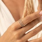 Esse kit com 3 anéis meia aliança é puro poder! Três peças lindas com zircônias brancas que brilham muito e banhos de ouro 18k e ródio branco. Use um, dois ou os três juntos — o efeito é incrível! Perfeito pra quem ama misturar brilho, elegância e um toque moderno no visual.