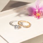 O kit com solitário redondo e aparador nos banhos de ouro 18k e ródio branco traz elegância imediata ao look. As zircônias brancas iluminam a peça com um brilho delicado e sofisticado. O solitário destaca a pedra central, enquanto o aparador adiciona um acabamento moderno, versátil e cheio de estilo.